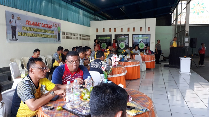 foto para Pamen Polda Sulteng saat pembukaan turnamen bulu tangkis dalam rangkat peringatan Hut Bhayangkara ke 72 tahun. foto Bang Doel/deadline-news.com