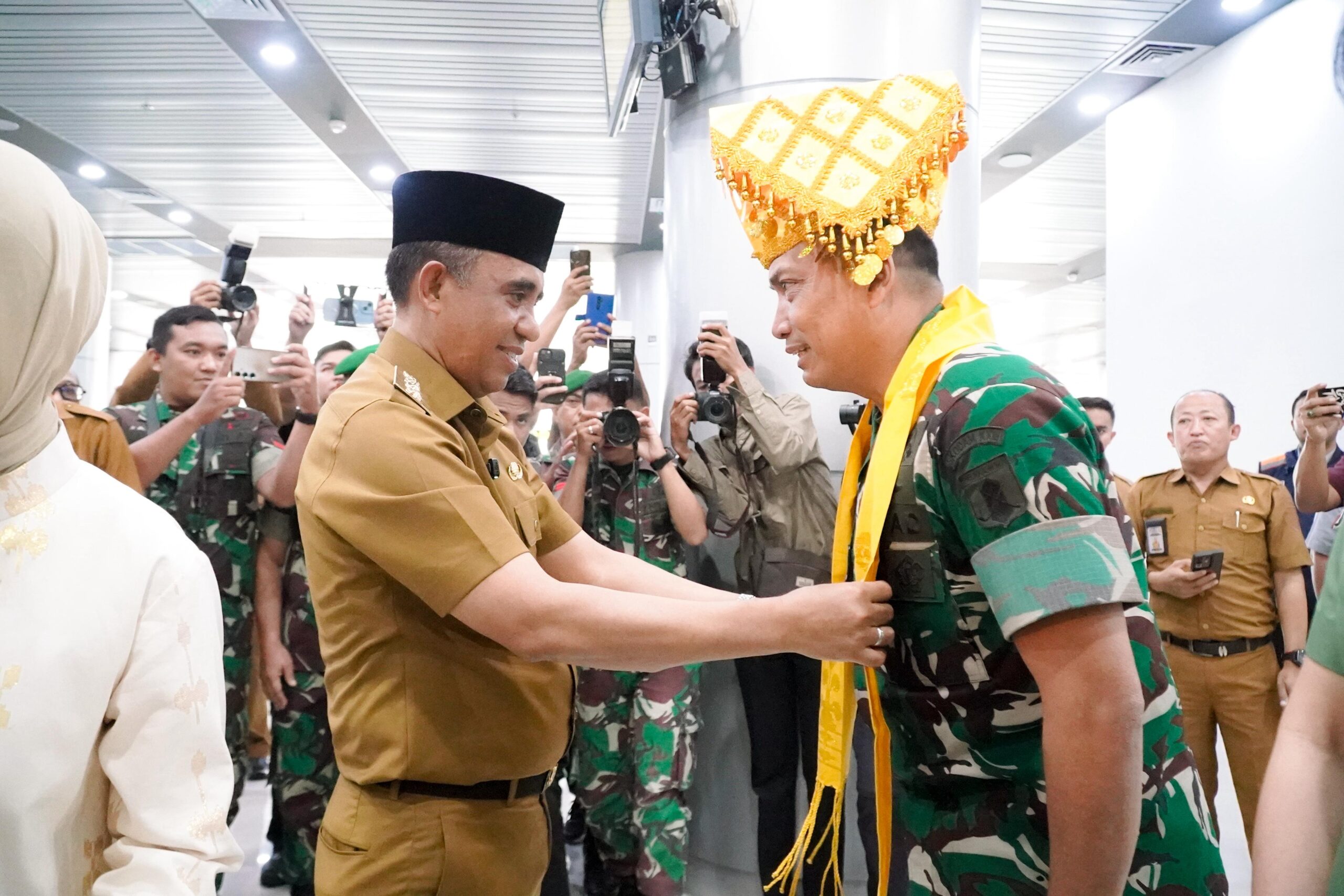 Antasena (deadlinews.co) – Palu – Gubernur Sulawesi Tengah, Dr. H. Anwar Hafid, M.Si, didampingi Ketua TP PKK Provinsi, Ir. Hj. Sry Nirwanti Bahasoan, menyambut kedatangan Pangdam XXIII/Palaka Wira Mayjen TNI Jonathan Binsar Parluhutan Sianipar beserta Ketua Persit Kartika Chandra Kirana Daerah XXIII/Palaka Wira, Dewi Binsar Sianipar, di Bandara Mutiara Sis Aljufri Palu, Senin (1/9/2025).