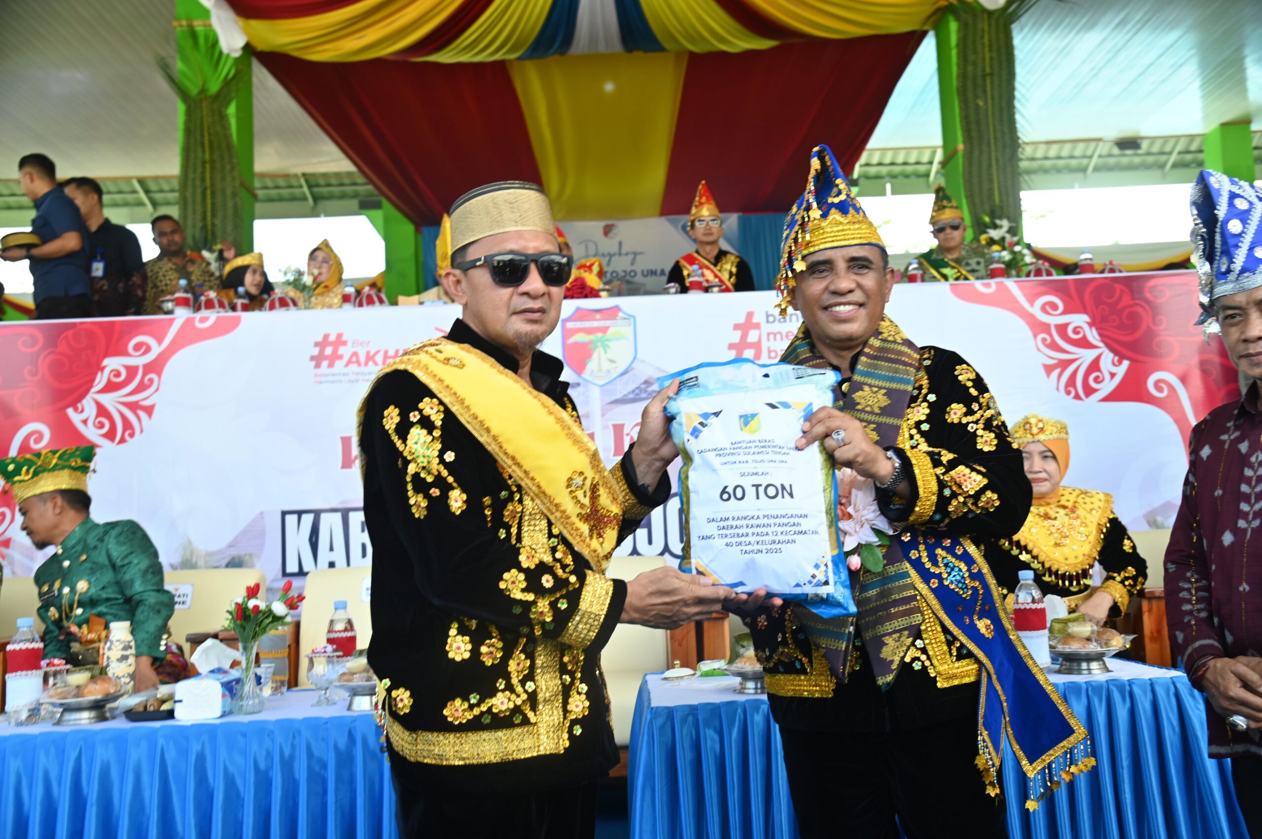 Pada akhir kegiatan, Gubernur Anwar Hafid menyerahkan bantuan cadangan pangan Pemerintah Provinsi Sulawesi Tengah berupa 60 ton beras kepada Pemerintah Kabupaten Tojo Una-Una, serta 2.000 paket sembako untuk rumah ibadah.