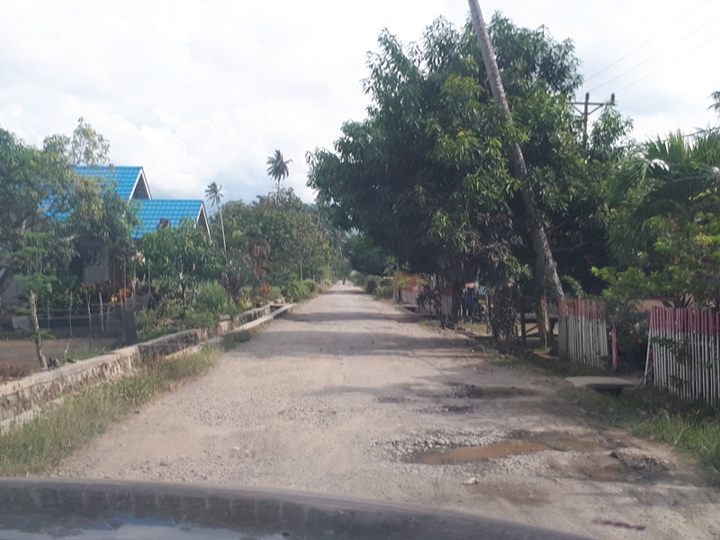 Bagaimana tidak, badan jalannya sudah berlubang dan berbatu-batu. Tak ada lagi aspal di Badan jalan itu. Padahal baru 2 tahun jalan itu selesai diperbaiki (tahun anggaran 2015).