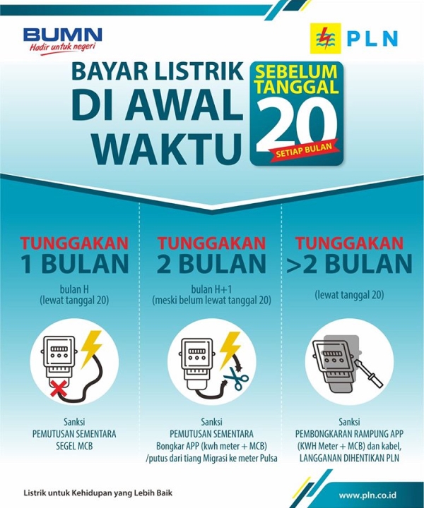 Listrik memang sudah menjadi salah satu kebutuhan pokok masyarakat, baik diperkotaan maupun di Pedesaan. Dan sebagai pelanggan Perusahaan Listrik Negara (PLN), kita harus patuh dan taat pada aturan main BUMN itu, yakni setiap bulan harus melakukan pembayaran secara teratur (Pelanggan pacarbayar).