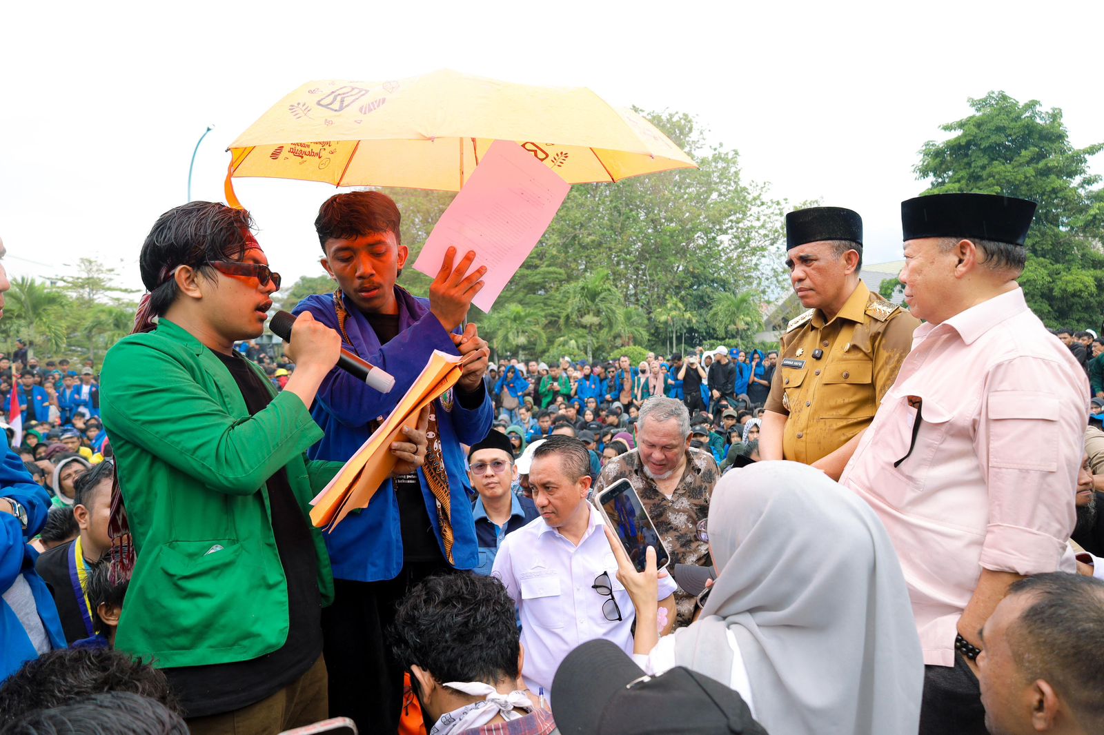 Suasana berlangsung kondusif ketika pimpinan DPRD bersama perwakilan massa aksi duduk bersama untuk mendengarkan aspirasi rakyat. Pertemuan itu berujung pada penandatanganan kesepakatan bersama yang memuat sejumlah poin tuntutan yang disampaikan para demonstran.