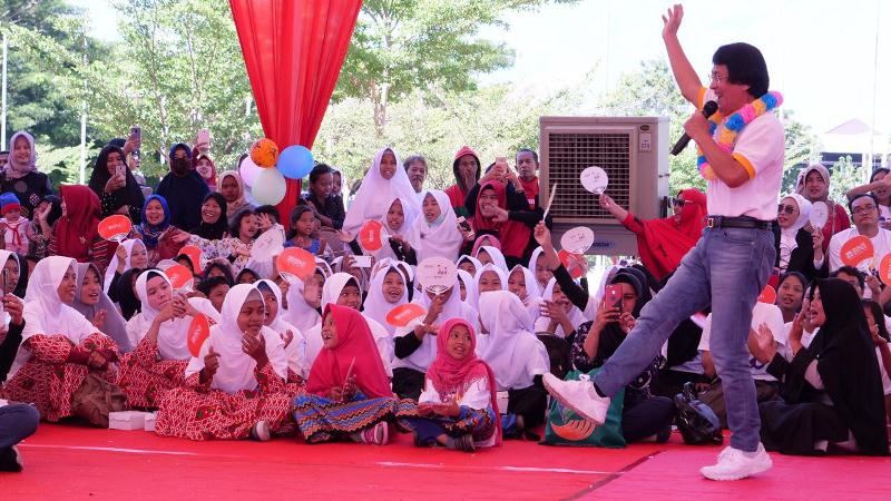 Ismail (deadline-news.com)-Palusulteng-Sekitar 1.000an anak-anak korban gempa bumi, tsunami dan likuifaksi di Palu, Sigi dan Donggala bermain, menari, dan bergembira bersama dalam acara “One Day For Children” di Lapangan Vatulemo, Kota Palu, Kamis.