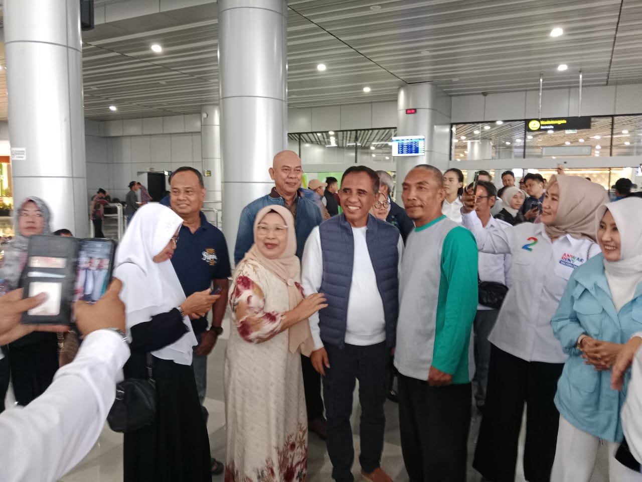 Setibanya di Bandara Mutiara SIS Al-Jufrie Palu pada pukul 06.45 WITA dengan penerbangan Batik Air, Anwar Hafid disambut penuh antusias oleh ratusan pendukungnya.
