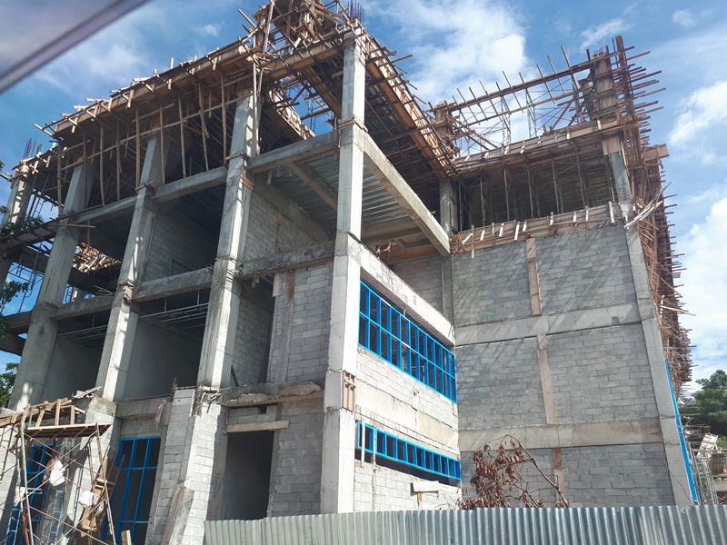 foto proyek pengerjaan gedung asrama haji Palu yang belum selesai. padahal kontraknya Desember 2017. foto Bang Doel/deadline-news.com