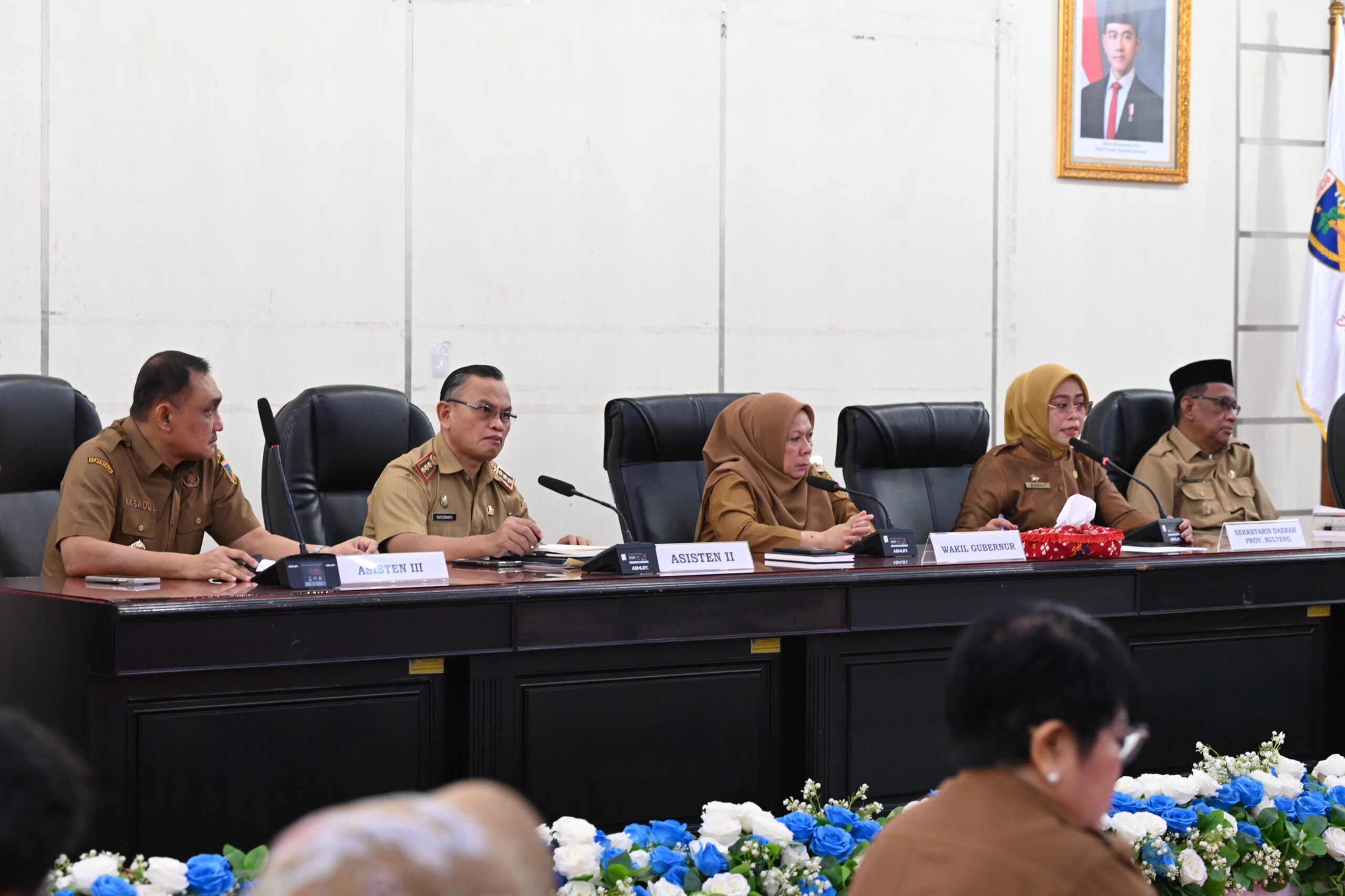 Rakor dihadiri Sekprov Dra. Novalina, M.M, para staf ahli gubernur, asisten dan kepala biro lingkup sekretariat daerah serta para kepala perangkat daerah (dinas dan badan) lingkup Provinsi Sulteng.