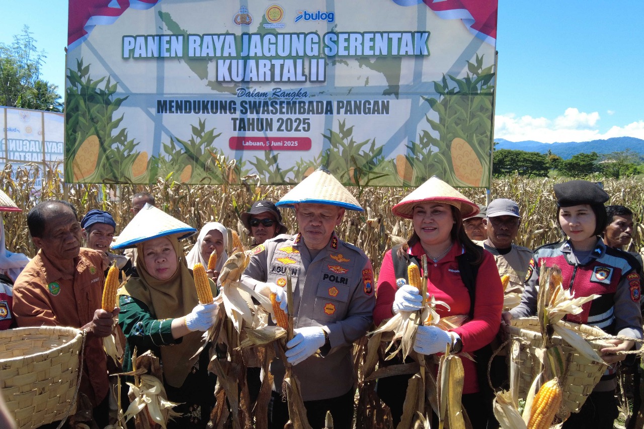 Sementara berdasarkan data kesiapan panen raya jagung serentak kuartal II Polda Sulawesi Tengah, antara lain, Polda Sulawesi Tengah, luas lahan 30 Ha, estimasi panen 120 ton, Polresta Palu, luas lahan 0,5 Ha estimasi panen 2 ton, Polres Sigi, luas lahan 59 estimasi panen 118 ton, Polres Donggala, luas lahan 1,3 Ha, estimasi panen 3 ton, polres Parigi moutong, luas lahan 25,25 Ha, estimasi panen 123 ton, Polres Poso, luas lahan 35,7 Ha, estimasi panen 90 ton, Polres Toli-Toli, luas lahan 1 Ha, estimasi panen 1 ton, Polres Buol, luas lahan 1,6 Ha, estimasi panen 8 ton, Polres Morowali Utara, luas lahan 2 Ha, estimasi panen 5 ton, Polres Morowali, luas lahan 1,5 Ha, estimasi panen 1,3 ton, Polres Tojo Una-Una, luas lahan 18 Ha, estimasi panen 80 ton, Polres Banggai, luas lahan 5 Ha, estimasi panen, 10 ton, dan Polres Banggai Kepulauan, luas lahan 8 Ha, estimasi panen 2 Ton, dengan total luasan 188,85 hektar dengan estimasi panen 563,3 ton pipilan kering jagung.